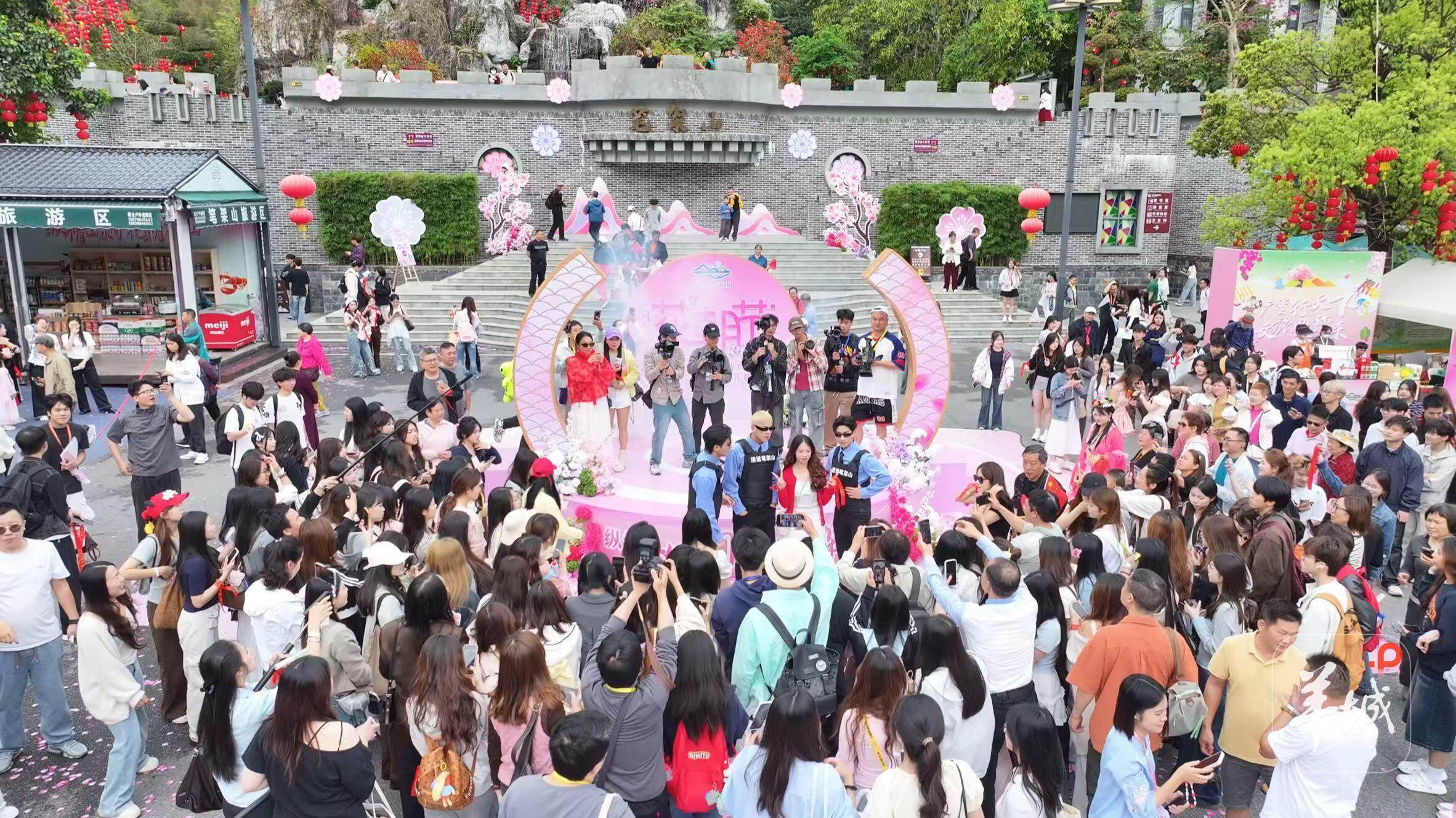 在广东原土,春日经济的业态升级更为多元。清远笔架山于3月21日启动第三届花朝月步履,以“清远十二花神”为中枢IP打造全场景NPC互动体验,游客可参与飞花令、讴歌接龙等互动游戏,现场还设擂茶非遗体验区,让游客亲手制作擂茶。